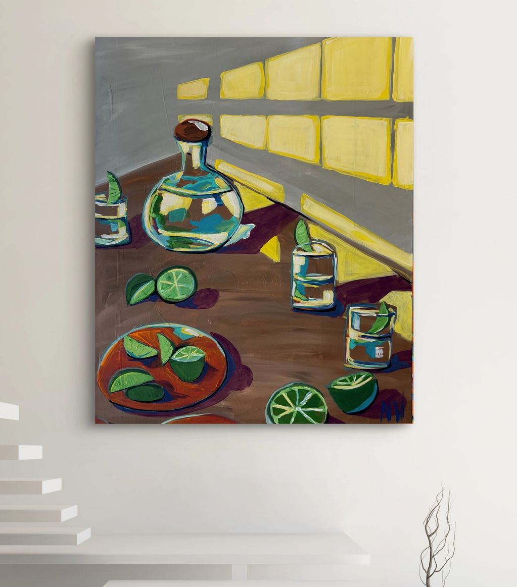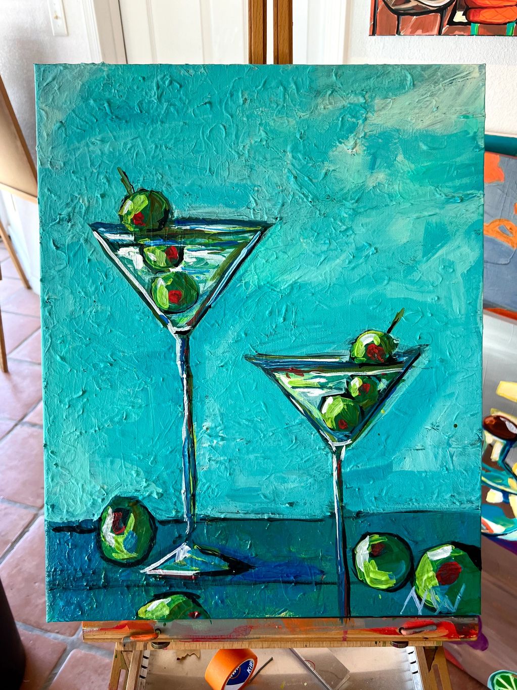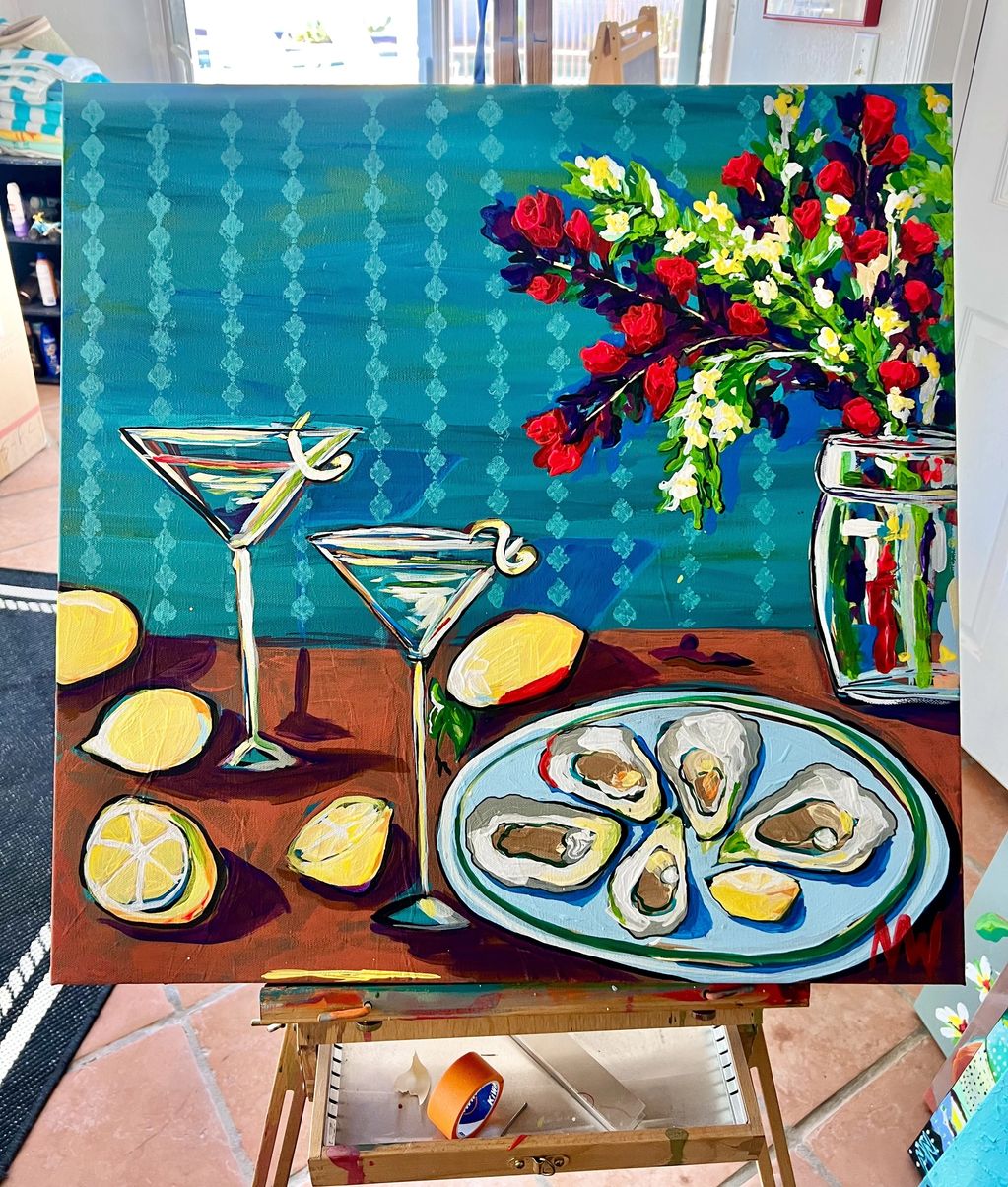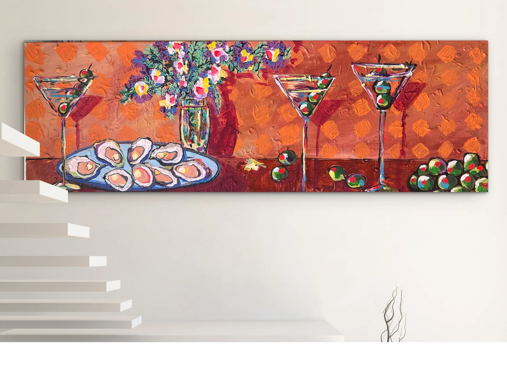"Happy Hour" is a 24 x 30 inch acrylic painting on canvas. unframed and offered for $585